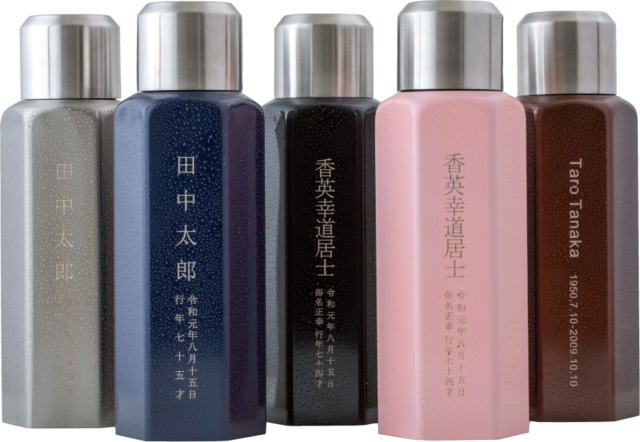 蓋(キャップ)部分には、お名前や戒名をレーザー彫刻できるため、どなたのお骨か一目で分かり、管理面でも安心です。