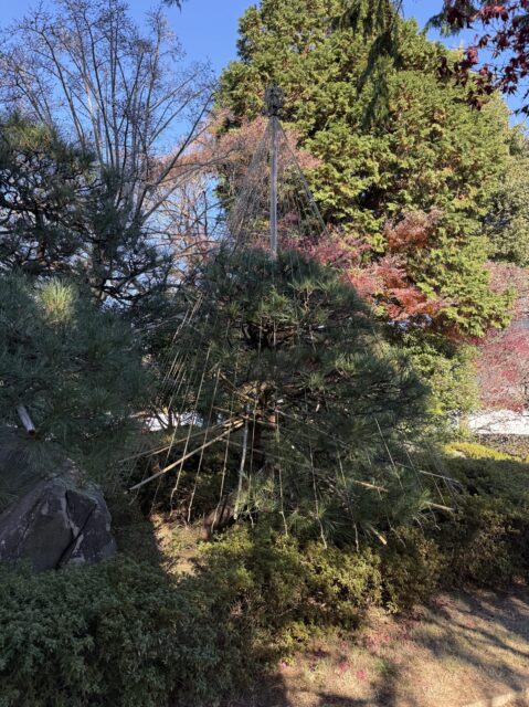 多磨霊園・管理事務所前の松に「雪吊り」が施されました