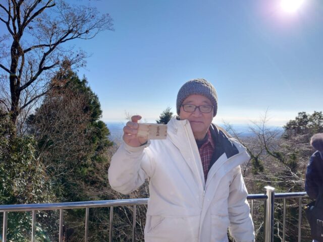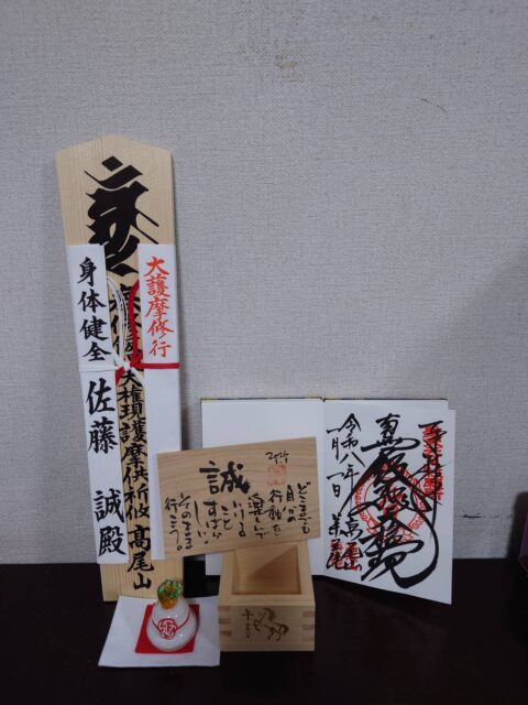 ケーブル高尾山駅に着いて安田邑美先生に書をしたためて頂き、振舞酒に舌づつみを打ってから薬王院へ。御朱印を貰い、いざ本堂へ。