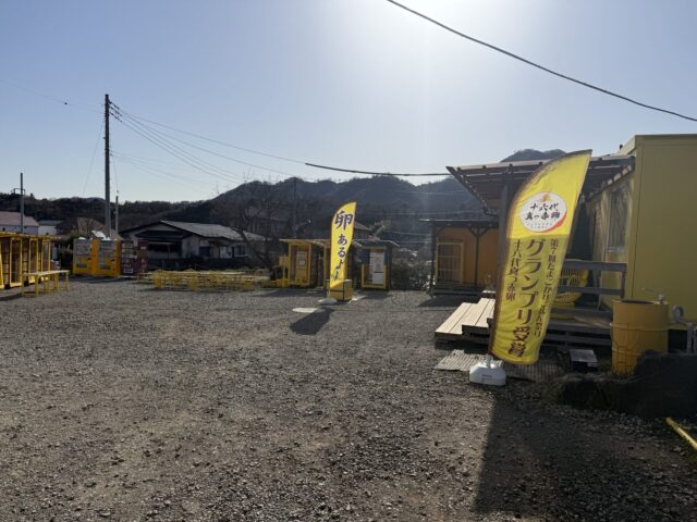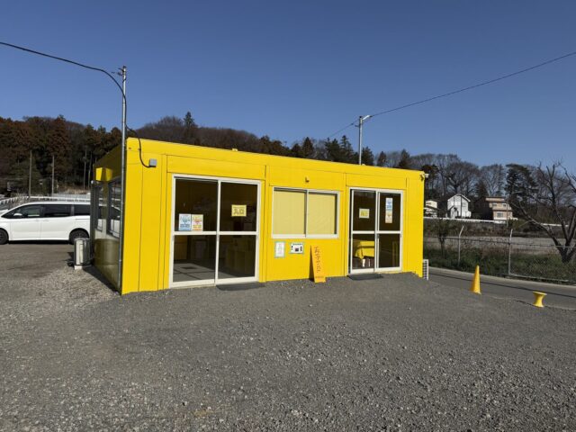 到着すると、まず目に入るのが黄色いプレハブ