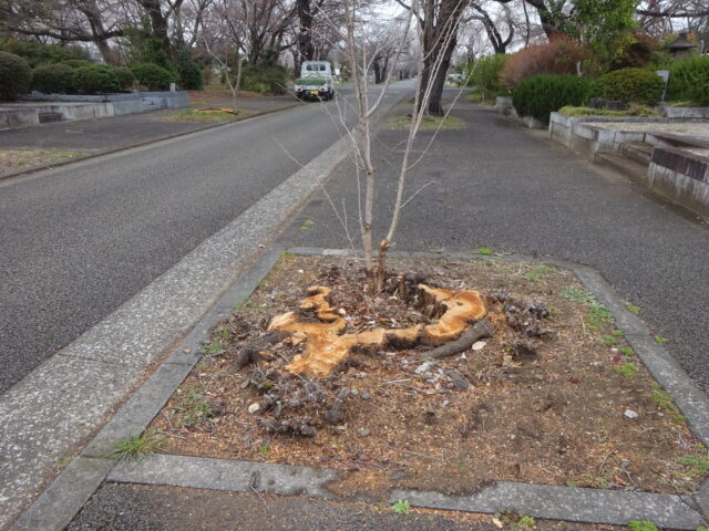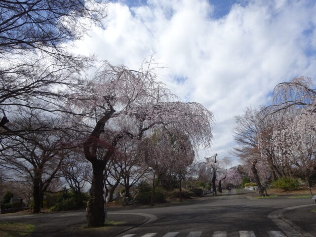 多磨霊園は今しだれ桜が満開です、他の桜は5分咲き位です、気象庁の人間ではありませんがその様に感じます、桜の花とは別に、老木は倒壊の恐れがあるのでしょう、あちこちで切られています。